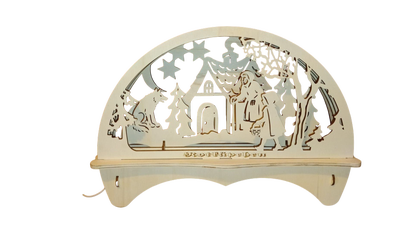 Dieser lasergeschnittene Mini-Schwibbogen aus 4 mm Sperrholz ist ein wunderschönes Dekorationselement, das durch eine sanft leuchtende Drahtlichterkette eine warme, festliche Atmosphäre schafft. Mit präzisem Laserschnitt gefertigt, misst der Schwibbogen ca. 194 mm in der Breite, 132 mm in der Höhe und 45 mm in der Tiefe. Die integrierte Drahtlichterkette sorgt für ein angenehmes Licht, während das unsichtbar im Sockel versteckte Batteriefach eine aufgeräumte Optik gewährleistet. Dieses montierte fertige Stück ist sofort einsatzbereit und ideal für weihnachtliche Dekorationen o.ä