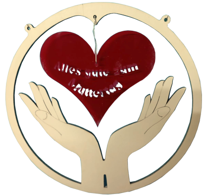 Das Mobile ist aus robustem 4 mm Sperrholz , ca 256mm Durchmesser und einem zentralen Herz aus 3 mm rotem Plexiglas gefertigt, alles präzise lasergeschnitten. Jedes Detail wurde sorgfältig gestaltet, um höchste Qualität zu gewährleisten. Die sanften, schwingenden Elemente um das Herz herum verleihen dem Mobile eine harmonische Bewegung, die jeden Raum bereichert.