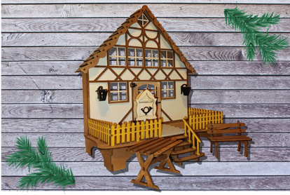Wichtelhaus im Massstab 1:12 im Fachwerkstil, handgefertigt aus Holz - Adventszeit, Wichtel, Wichtelset, Weihnachten, Holzdeko für Kinder, Miniaturhaus, Puppenhaus.