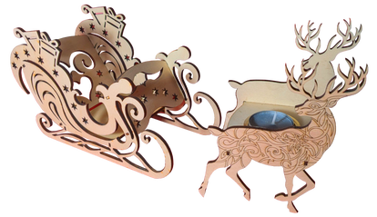 Besonders stilvoll wird der Schlitten durch die Rentierfiguren, die ihn begleiten. Diese sind mit einer Verbindungsplatte verbunden, die als Träger für ein Teelicht dient, sodass der Schlitten sanft beleuchtet werden kann. Für eine individuelle Gestaltung können Sie den Schlitten zusätzlich mit Geschenkpackungen oder weiteren Dekoelementen schmücken